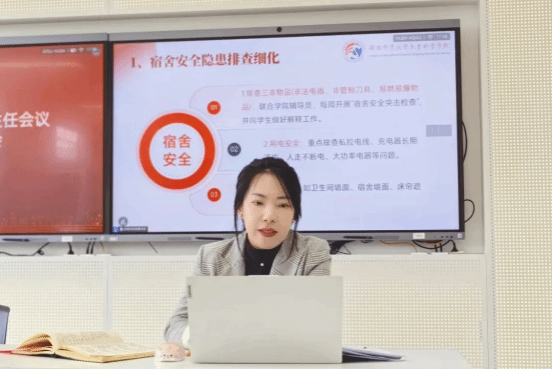 会上,学院学生工作办公室主任林拱鑫向全体班主任传达了9月2日学校政工例会的内容。学院党委副书记、纪委书记朱琳围绕学生管理工作的重点注意事项进行培训。她结合典型案例,从宿舍管理、意识形态教育、安全教育、突发事件处理及班主任管理职责明确等五个维度,讲解工作要点、梳理风险点,指出了常见问题,提供了具体的应对方法,为班主任提升班级管理的专业性与规范性提供了指导。