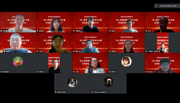 为进一步提升课程教学质量,共享优秀教学经验,促进教师交流学习,1116日下午,教育科学学院教育系在腾讯会议举办了“线上授课质量提升研讨会暨优秀教学案例展示会”。教育系全体教师参加会议,教育系系主任陈得军老师主持会议。